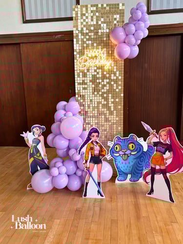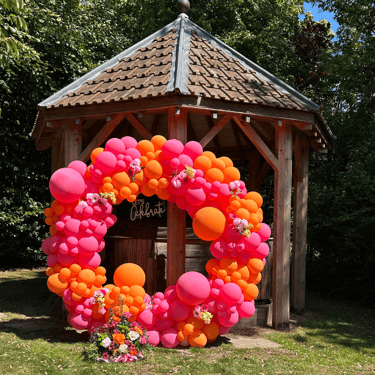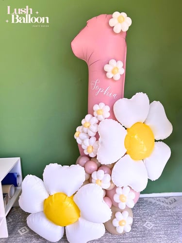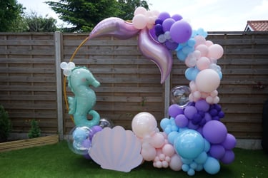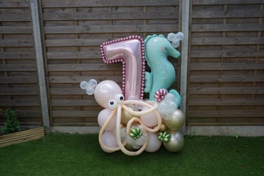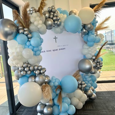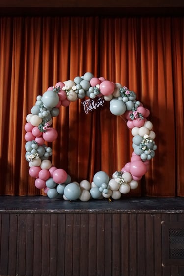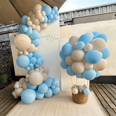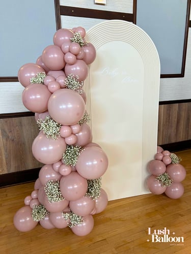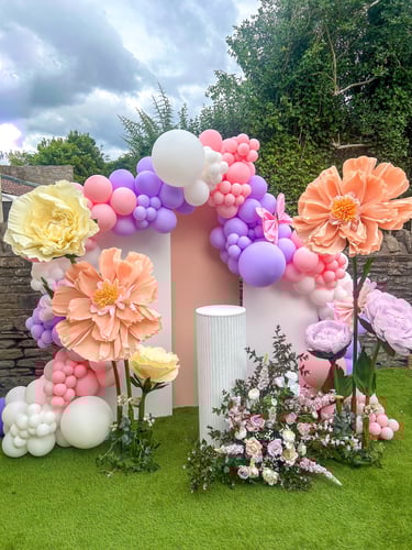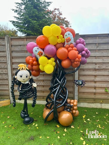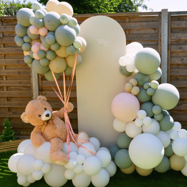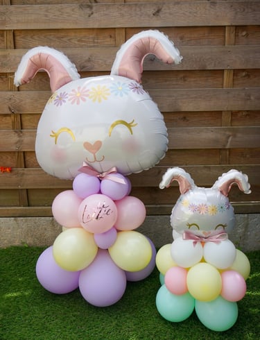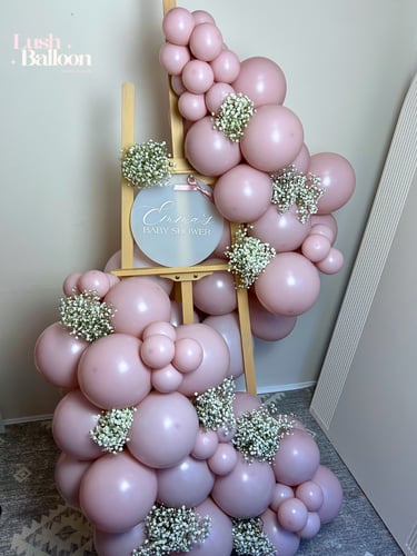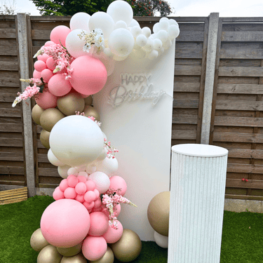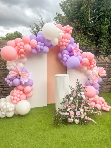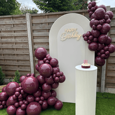 Freestanding decorative balloon towers. Can be used as centrepieces, photo backdrop or entryway decoration
