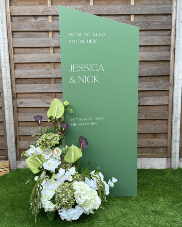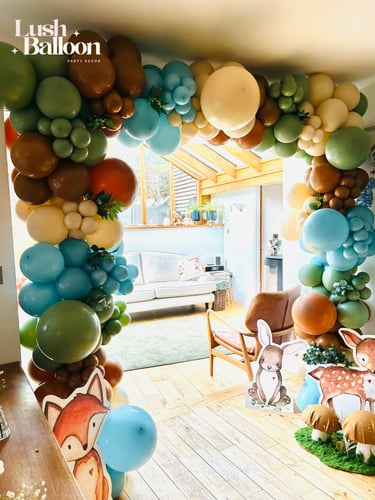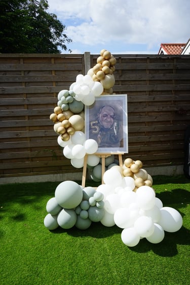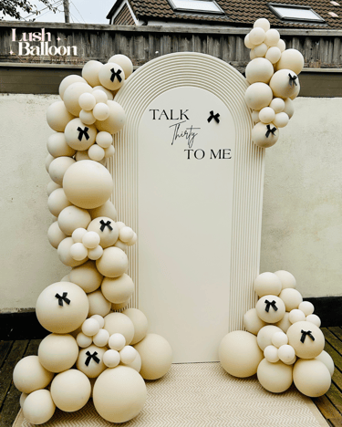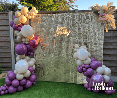 organic balloon garland decoration on personalised sailboard(s)/shimmer wall
