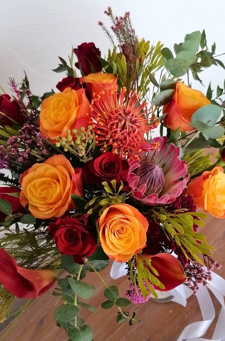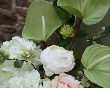 Wedding florals designed in collaboration with an experienced floral designer, offering timeless arrangements with a modern edge.