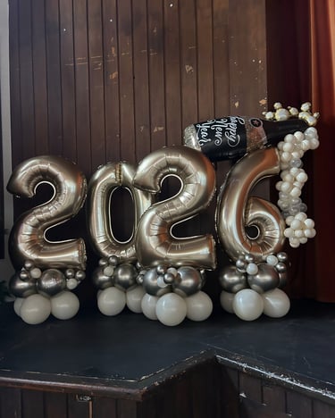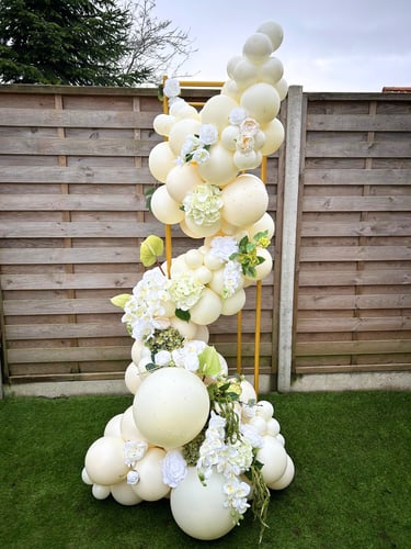 Freestanding decorative balloon towers. Can be used as centrepieces, photo backdrop or entryway decoration